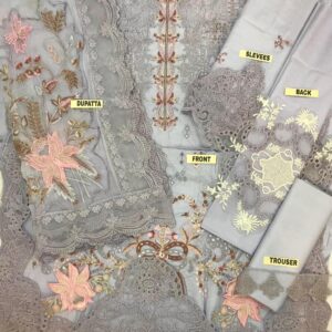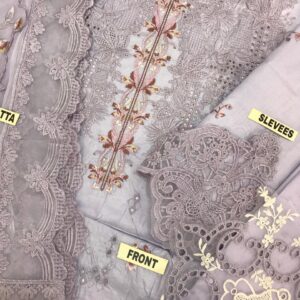 Paired with a dyed cambric trouser featuring trouser bunch detailing, this Pakistani embroidered lawn dress is ideal for summer gatherings, casual events, and elegant day wear. If you are looking for a stylish lawn 3 piece suit with detailed embroidery and breathable fabric, this Qalamkar design offers timeless eastern elegance.