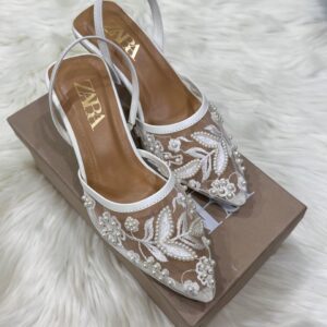Inspired by the contemporary fashion aesthetic of Zara, the Zara Embroidery Heel reflects attention to detail and refined styling. The structured heel provides balance and confidence, while the embroidered accents elevate the design with a premium feel. Its elegant profile pairs effortlessly with dresses, traditional wear, skirts, and evening outfits.
